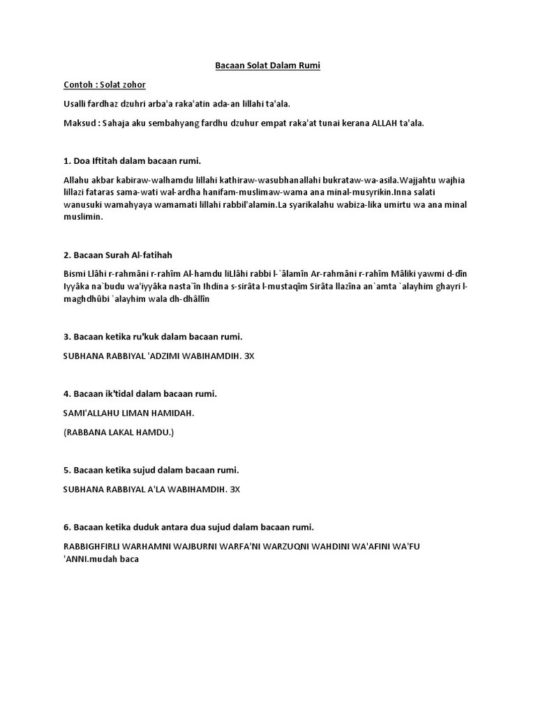 Bacaan doa iftitah beserta terjemahan dalam bahasa melayu. Bacaan tahiyat awal dalam rumi : Doa qunut di baca dalam rakaat akhir sembahyang subuh di mana ia .